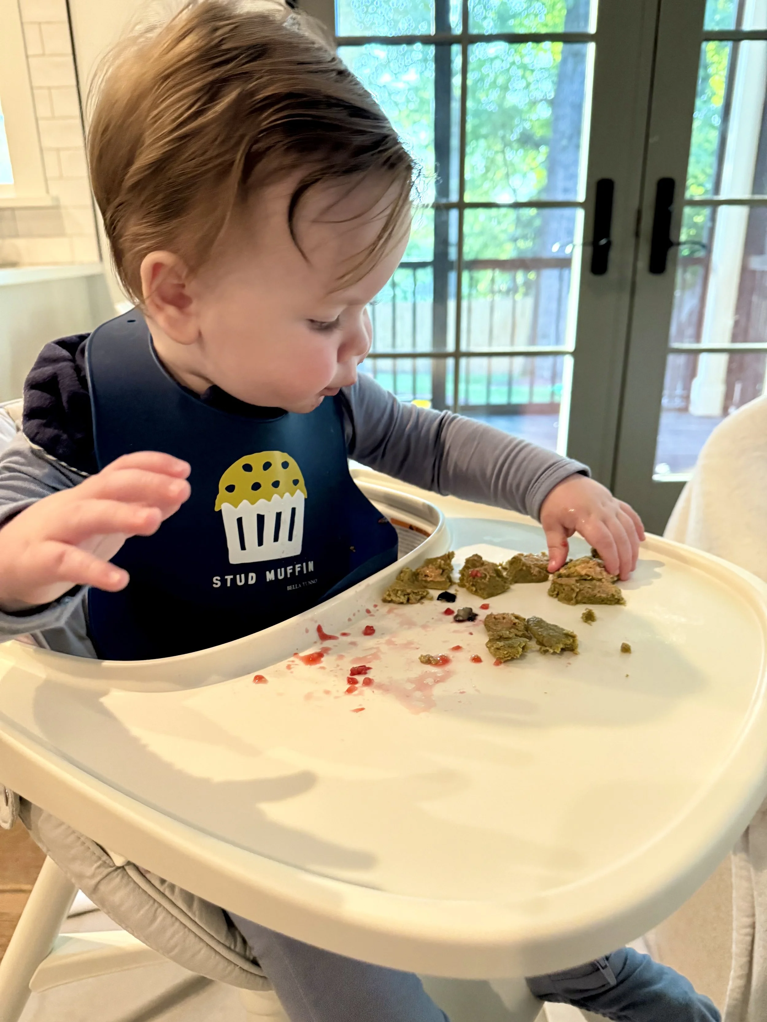 When my son's solid food journey began, I started baking these in big batches and freezing them to make my life easier. I set out to create a healthy meal he could feed himself that also helped with allergen exposure. As he eats them into his toddler years, the pancakes continue to be an easy way to give him some protein and veggies without added sugar. And as our family has grown, grabbing these from the freezer on chaotic (or lazy) mornings are a lifesaver! I hope they serve your family as well as they've served ours.